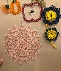 Our group is all about sharing your passion for all things embroidery/needlework/fabric arts. Our Show & Tell is both in person at our meetings and online via email to members. We like to share new projects people have completed as well as interesting finds, from books and secondhand art found in thrift shops, to podcasts and website!